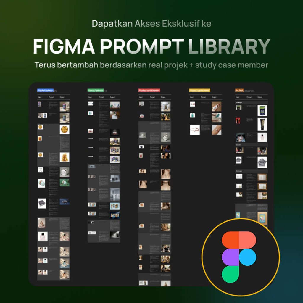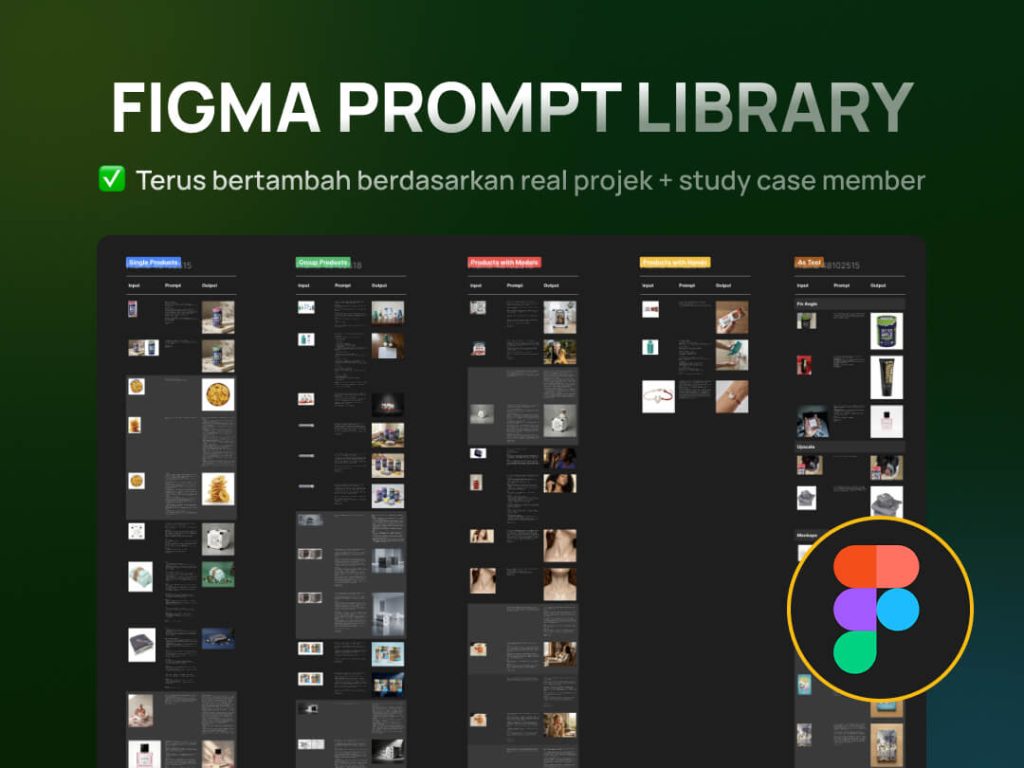 ✅ Plug & Play: Sedang buntu ide? Cukup buka library, cari style yang cocok, copy prompt-nya, ganti nama produk dan objeknya. Done.