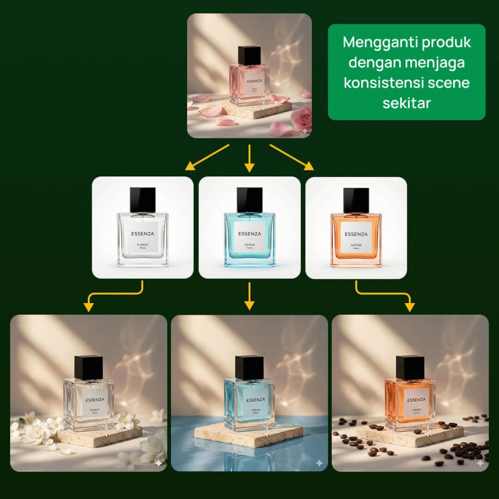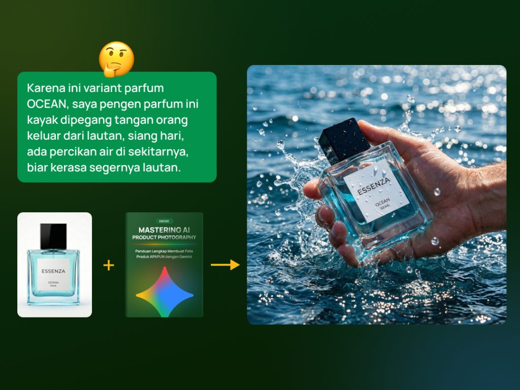 Kesimpulan: Ilmunya bisa dipakai di semua AI, tapi untuk hasil foto produk yang paling real dan presisi sesuai panduan ebook, rekomendasi utama saya tetap Gemini.